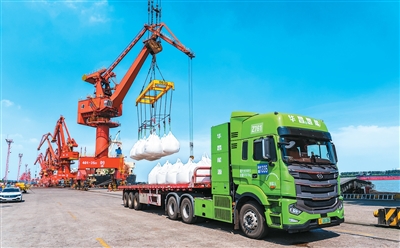 在江蘇省張家港港務集團碼頭,一輛氫能重卡正在進行裝運作業。據了解,該類氫能重卡在散貨運輸、大宗貨物干線運輸等多元場景中展現出強勁的綠色動能,為物流低碳轉型注入“氫”動力。 |