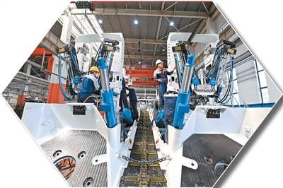 工人在中國煤炭科工集團太原研究院有限公司生產掘錨一體機。 |